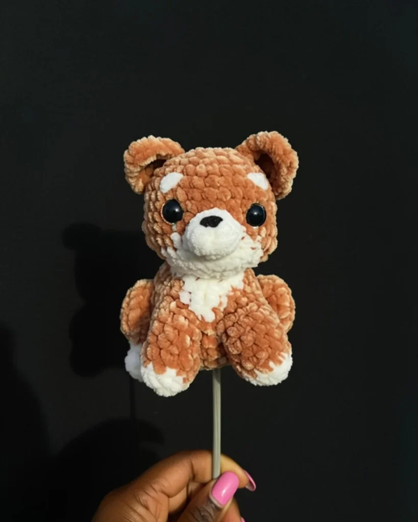 Accessories: Add a tiny crocheted collar, make a small bandana to tie around the neck, create a miniature leash for display purposes, or crochet a small sweater for your Shiba.