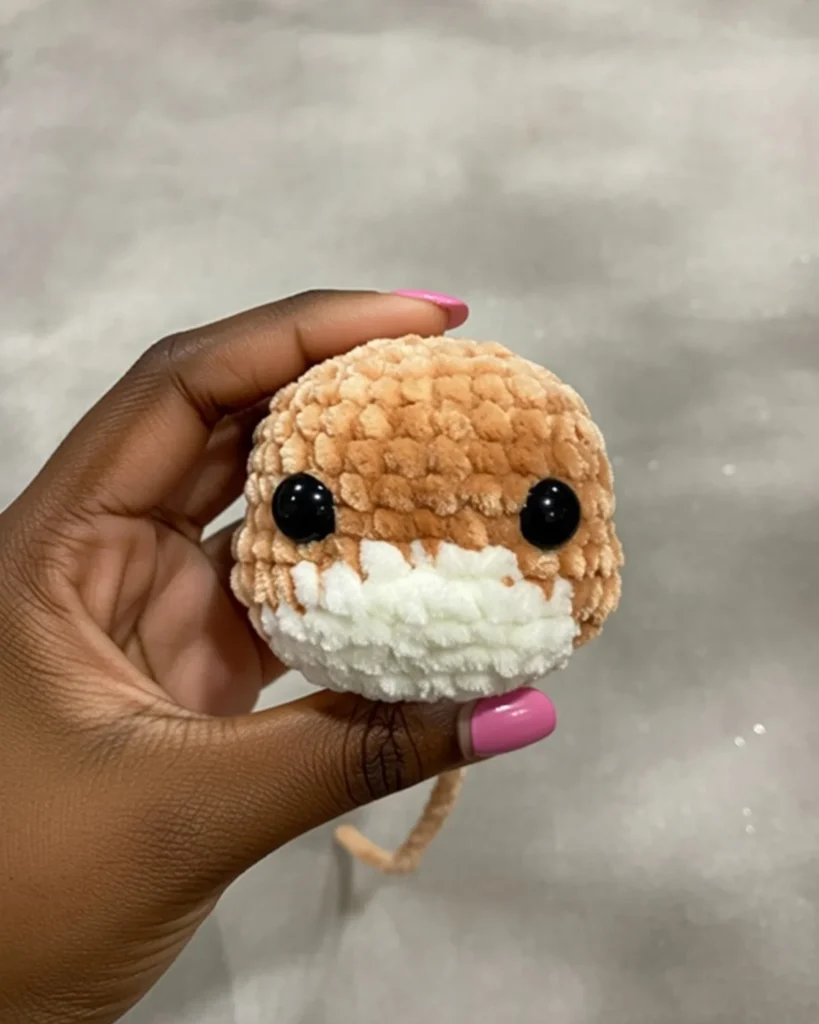 Color Change to White: For the next rounds, you’ll incorporate white to create the Shiba Inu’s distinctive facial markings. Change to white yarn where indicated in the pattern.